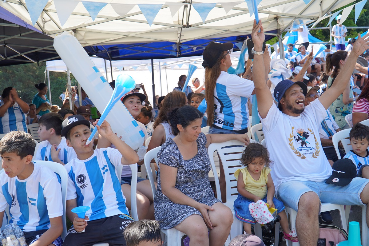 El Gobierno del pueblo de Merlo nuevamente reunió a los vecinos en un punto de aliento, donde pudieron ver el partido de Argentina en una pantalla gigante, instalado en el Parque Municipal Néstor Kirchner.