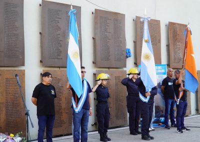 Autoridades municipales, veteranos de Malvinas, bomberos voluntarios y vecinos del distrito participaron del acto conmemorativo a los tripulantes del Crucero ARA General Belgrano, que se realizó en la Plaza Héroes de Malvinas.