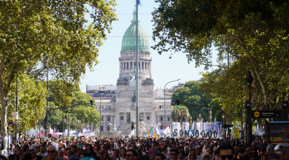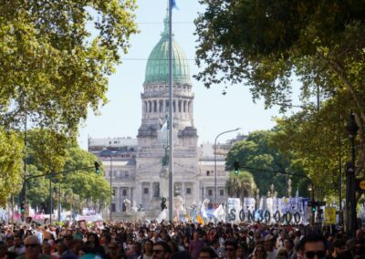Vecinos, estudiantes, docentes y organizaciones acompañaron la Marcha desde la Ex ESMA hasta la Plaza de Mayo, junto al Intendente Gustavo Menéndez y otras autoridades.