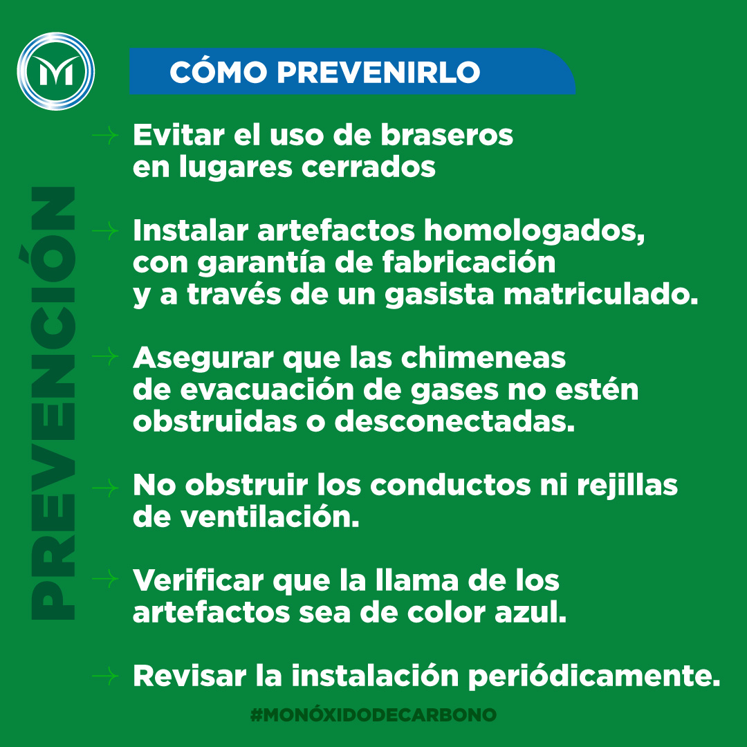 - Si tenés un detector de monóxido de carbono instalado, chequeá que siempre esté activo.