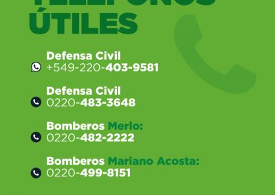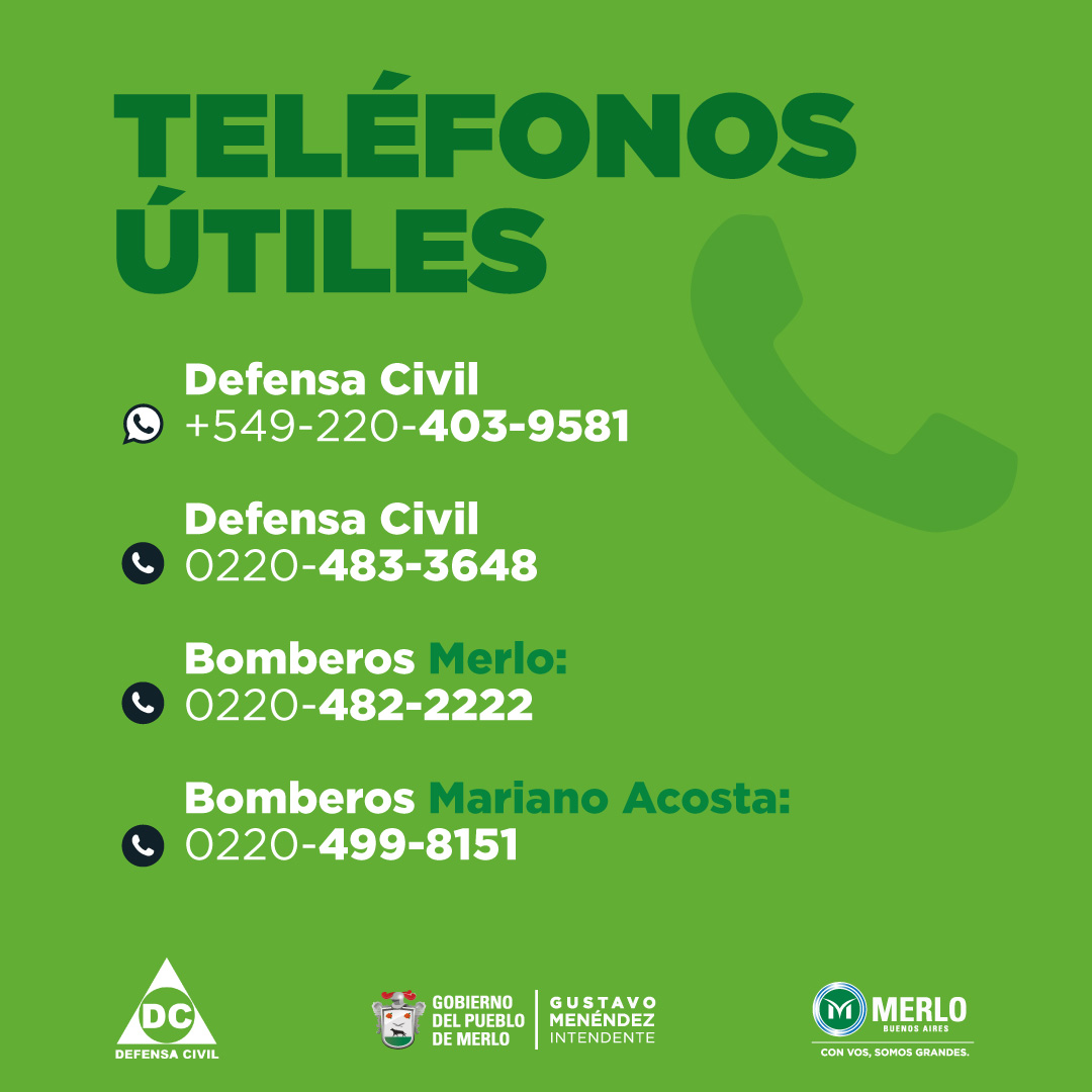 Más consultas en: Defensa Civil – (0220) 483-3648 / WhatsApp: +5492204039581 / Bomberos de Merlo – 0220-482-2222 / Bomberos de Mariano Acosta – 0220-499-8151