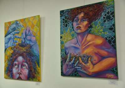 Alejandra Zeme es una artista plástica, muralista y docente. Junto a Marila Tarabay integra el grupo mural “Nereidas R”. La muestra “Nidos” es la primera exposición de Zeme en el Espacio de Consumos Culturales.