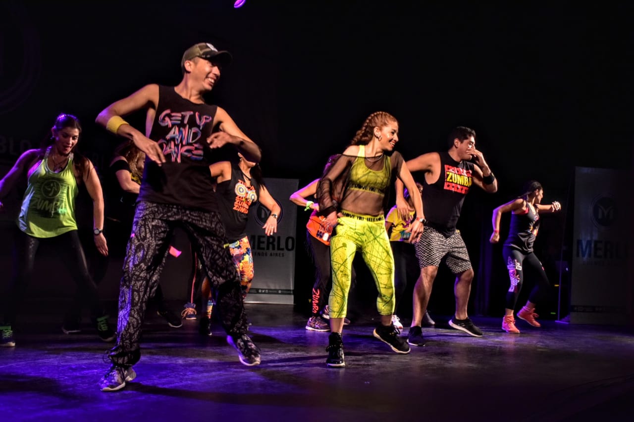 A cargo de esta muestra estuvieron 23 profesores de zumba de Merlo, encabezados por la instructora Romina Dipierro, que dirigieron a los 300 adultos y 100 niños participantes del evento. Todos ellos deleitaron al público presente con sus habilidades en este deporte.