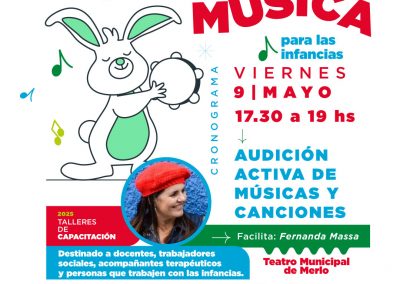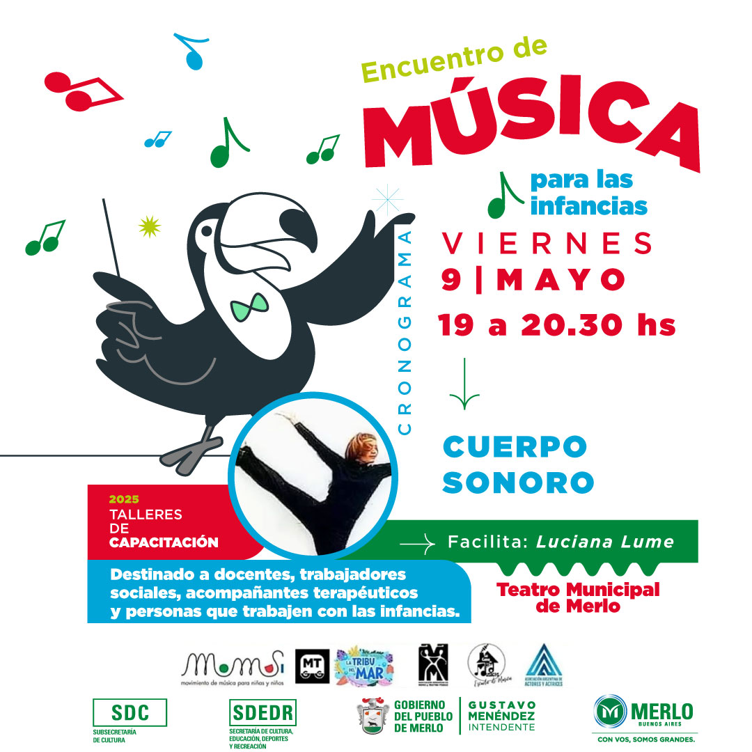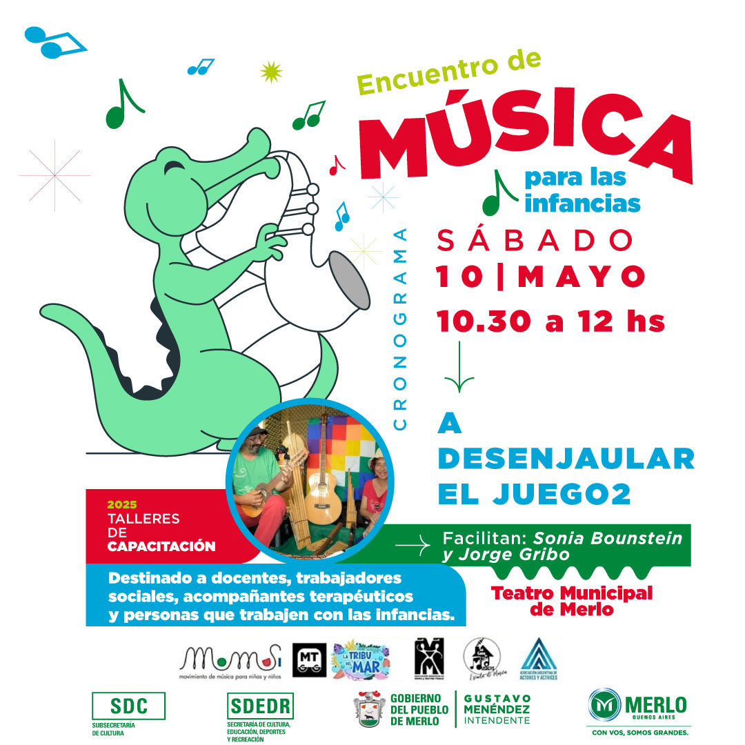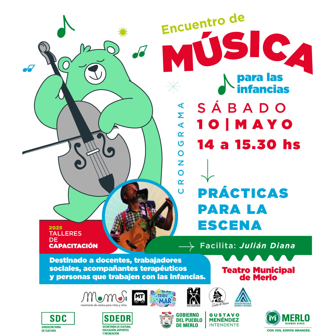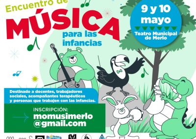 Encuentro de Música para las Infancias. El 9 y 10 de mayo en el Teatro Municipal de Merlo. Colón esq. Riobamba. Entrada libre y gratuita.