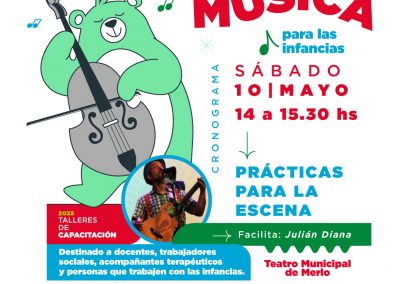 - Sábado 10/5 – 16:30 hs, Festival de Música para las Infancias (Julián Diana / Grupo Cielo Arriba)