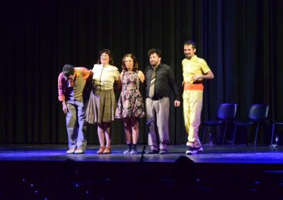 Con las actuaciones de Charly Arzulian, Eleonora Valdéz, Leticia González de Lellis, Tomás Rodríguez y Gabriel Páez, la obra mostró historias creadas en el mismo momento, que no vuelven a repetirse, que mantuvieron al público merlense en una constante sucesión de situaciones hilarantes.
