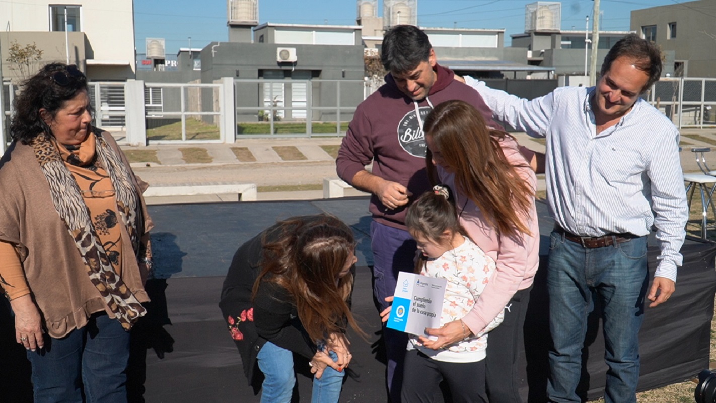 El acto se llevó a cabo en el Parque San Martín donde 13 familias merlenses cumplieron el sueño de acceder a la vivienda propia mediante el programa ProcreAR II y a su vez otras 3 accedieron a un préstamo tasa 0% en el marco del Programa Nacional Casa Propia que trabaja articuladamente con los municipios.