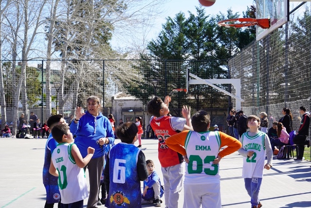 Niños, niñas y adolescentes participaron de una nueva jornada en la Liga Municipal de Básquet en el Parque Municipal Néstor Kirchner, con la presencia de Gustavo Menéndez y el subsecretario de Deportes, Mauro Schmahl.