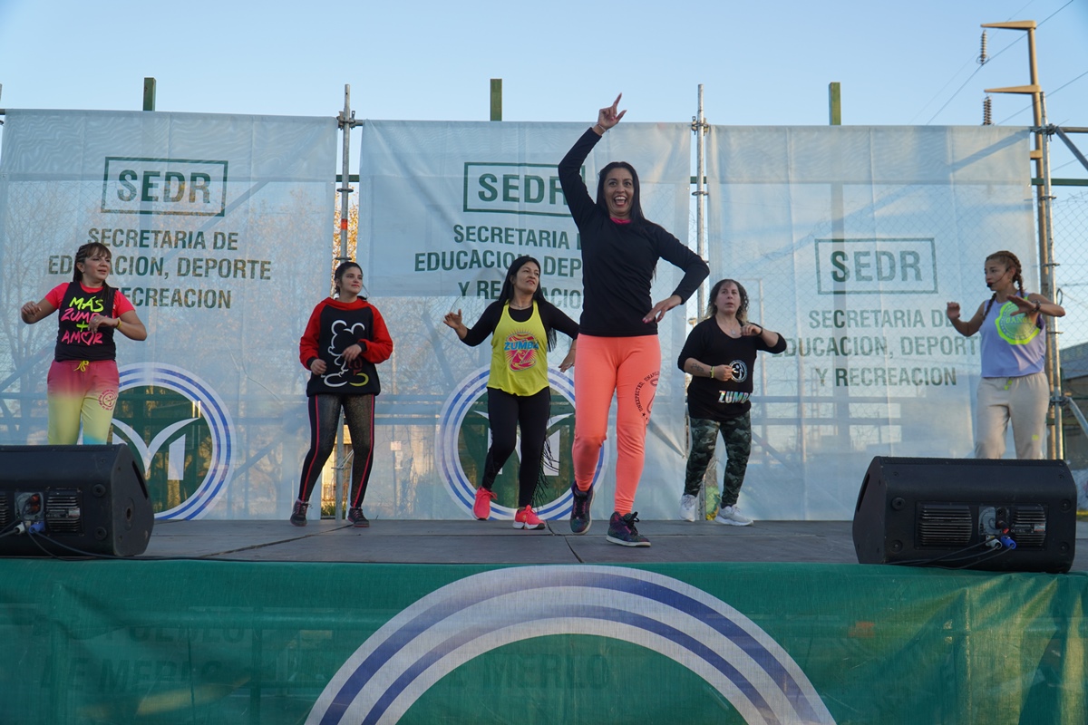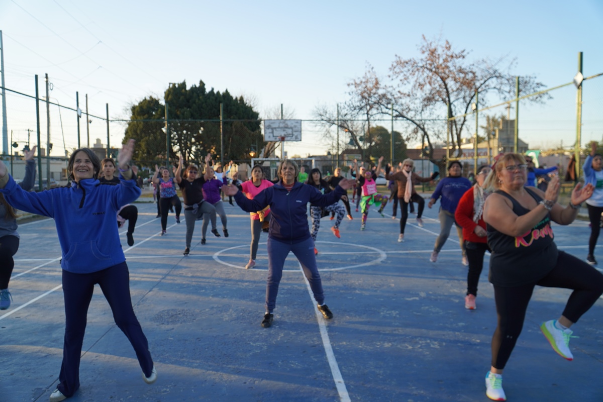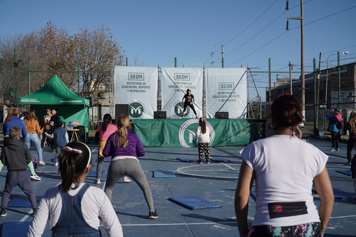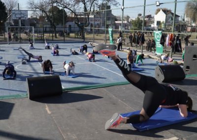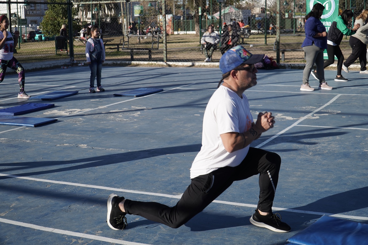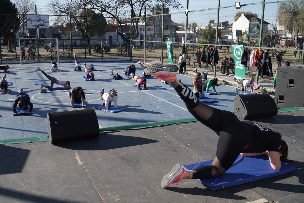 Cientos de merlenses disfrutaron de la jornada al aire libre, que contó con la presencia de las profesoras Cyntia Pettiti, Yoana Aranda y Lujan López para las rutinas de entrenamiento funcional y localizado, Florencia Torres para las clases de GAP y Sonia Monasterio en Fire box.