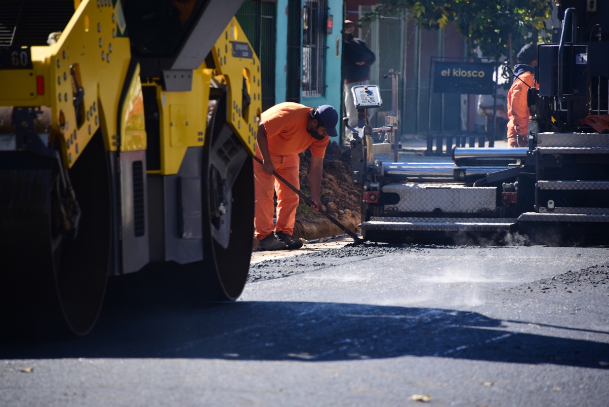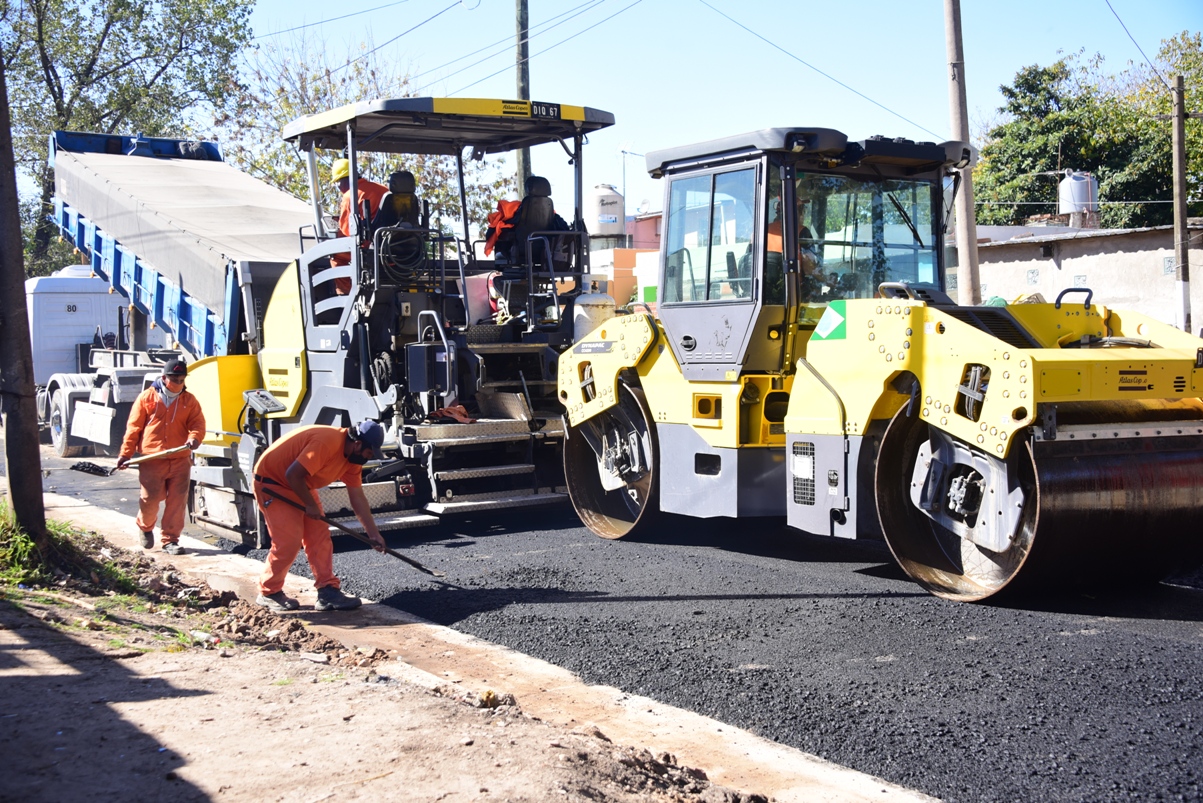 La Secretaría de Obras Públicas a cargo de Guillermo Bustos realiza nuevas tareas de pavimentación en la intersección de las calles Zapiola y Soler en el Barrio de Libertad.