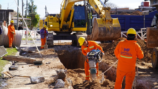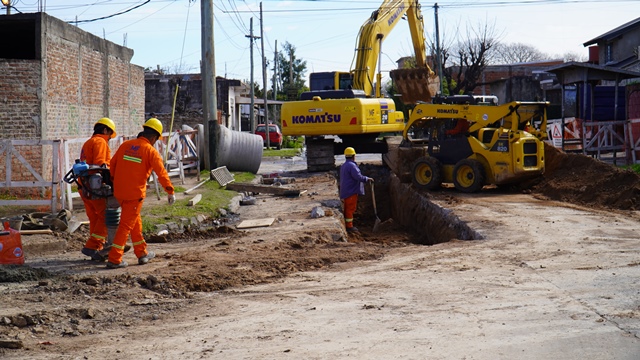 Gustavo Menéndez supervisó las tareas y manifestó “esta nueva red de desagües mejorará la calidad de vida de los vecinos reduciendo daños sino que también allanar el camino para futuros servicios de cloacas y pavimentación”.