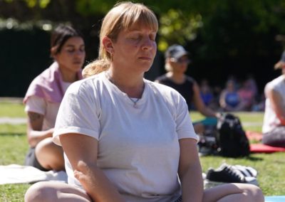 La instructora Romina Dipierro y profesoras invitadas brindaron clases de yoga, elongación y meditación al aire libre. Además, hubo charlas, comidas orgánicas, cuencos tibetanos y alineación de chakras.