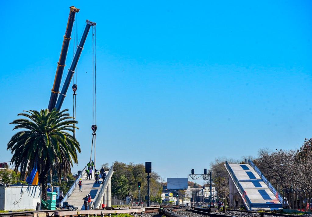 El emplazamiento del primer módulo se ejecutó hace apenas 10 días y estas tareas continuarán durante las próximas semanas. De esta forma, en poco tiempo, finalizará la obra del puente que permitirá optimizar la circulación del tránsito y beneficiará a los usuarios del Tren Sarmiento, ya que favorecerá la frecuencia de las formaciones.