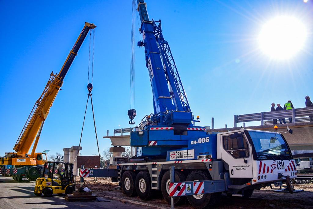 Avanza rápidamente la construcción del puente ubicado en San Antonio de Padua, que unirá el lado sur con el lado norte de dicha localidad. En esta segunda etapa, se lleva adelante la colocación del módulo de subida.