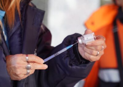 En la actividad, los vecinos pueden completar los esquemas de vacunación contra el COVID. Además, se aplican vacunas contra la neumonía, antitetánica y antigripal para adultos mayores.