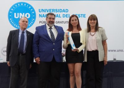 El Rector de la UNO, Roberto Gallo destacó la importancia de la Casa de Altos Estudios para nuestra región y expresó “Estamos celebrando un nuevo acto de colación, con la satisfacción de ver materializado el acceso a la educación que tienen los jóvenes merlenses en el sistema universitario”.