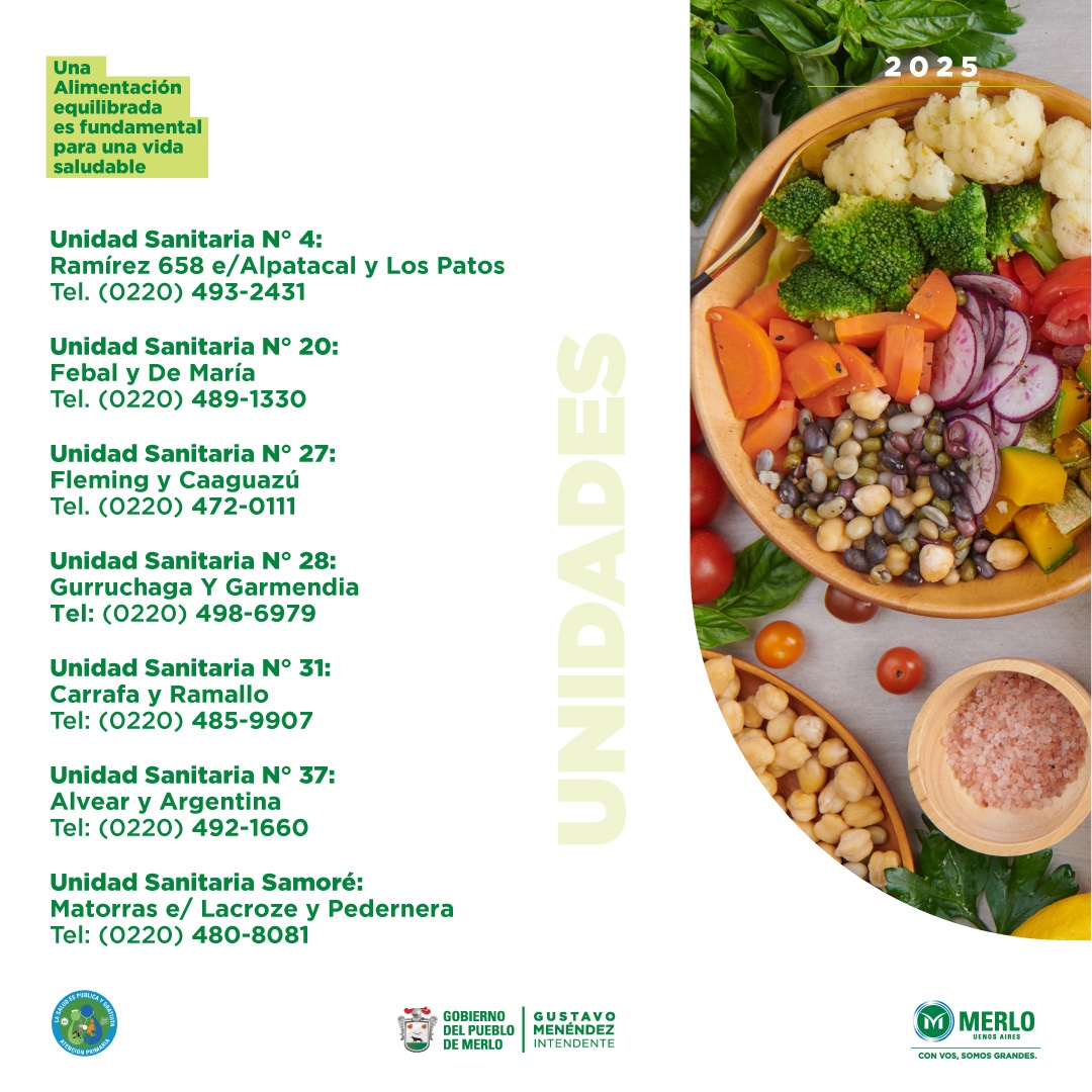 Acercate a las unidades sanitarias que cuentan con el Servicio de Nutrición para recibir información y asesoramiento: