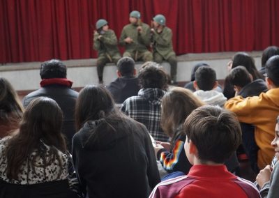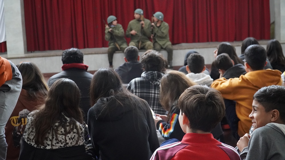 La obra se enmarcó en una jornada de reflexión sobre la temática y recorrió los episodios más oscuros de la historia argentina para mostrar el contexto histórico en el que se gestó la Guerra de Malvinas. La Subsecretaría de Educación impulsó el encuentro con la participación de docentes, estudiantes y autoridades.