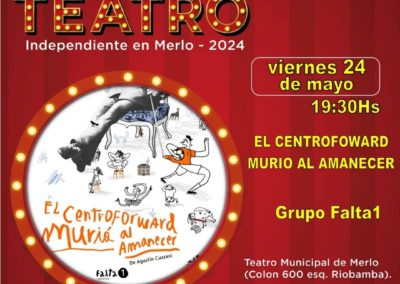 - “El Centrofoward murió al amanecer” – Grupo Teatral Falta 1. Autor: Agustín Cuzzani