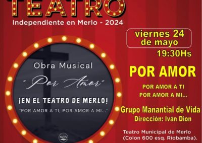 - Obra Musical “POR AMOR” – Grupo Manantial de Vida. Dirección: Iván Dion