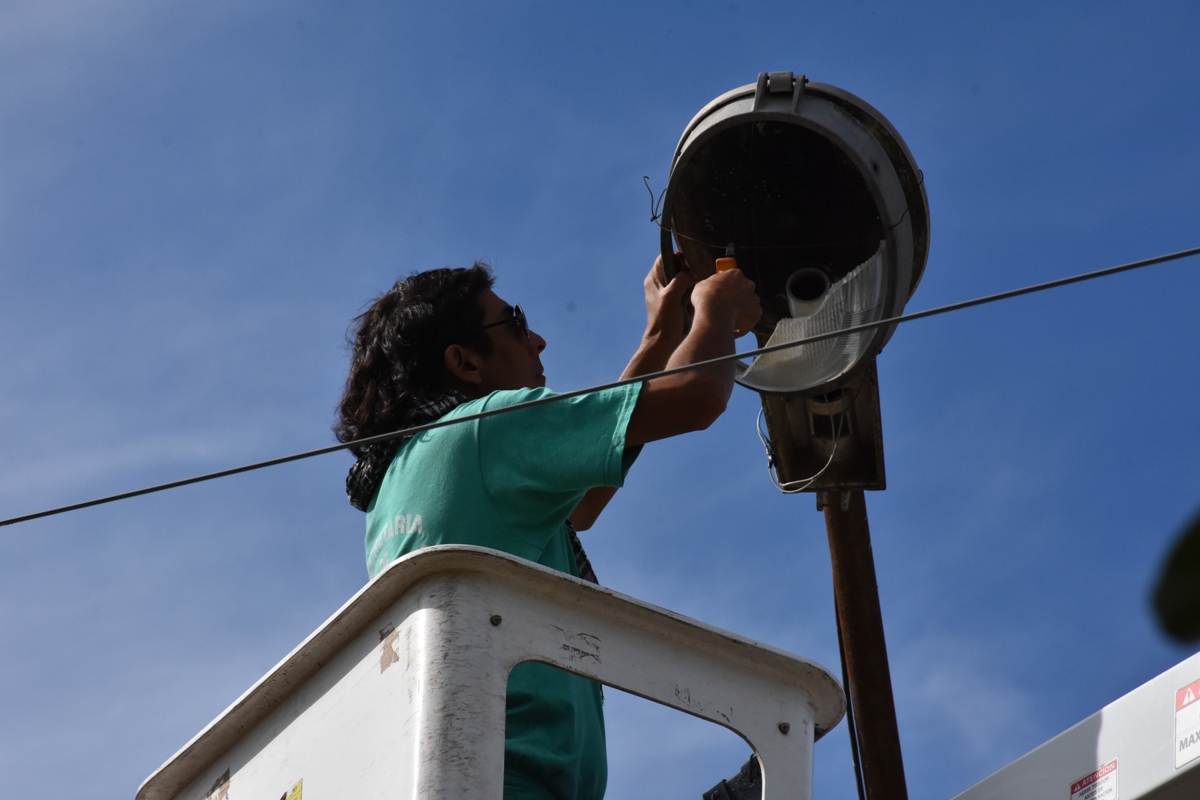 El operativo comenzó en las calles Montalvo y Vidt, y de allí se distribuyeron por el lugar para realizar las siguientes tareas: recambio por agotamiento y desgaste de lámparas, retiro de artefactos y estructuras fuera de servicio, y renovación de equipos.