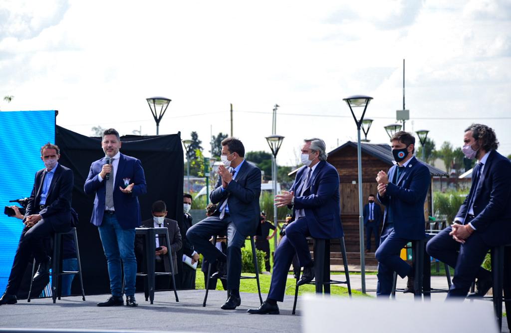 El Intendente Gustavo Menéndez recibió al Presidente de la Nación y al Gobernador de la Provincia de Buenos Aires para presentar el Programa “Paradas Seguras”, cuyo objetivo es instalar 4.000 refugios con dispositivos de seguridad en paradas de colectivos de 43 municipios de la Región Metropolitana de Buenos Aires.