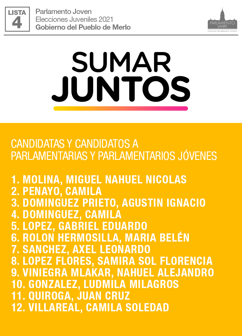 Durante la jornada del martes 7 de Diciembre del 2021 se realizaron por cuarta vez las Elecciones Juveniles del Parlamento Joven de Merlo, con la participación de más de mil jóvenes merlenses de diferentes puntos de nuestro distrito, quienes votaron a 12 nuevos parlamentarios que renovarán la mitad de este cuerpo legislativo juvenil.