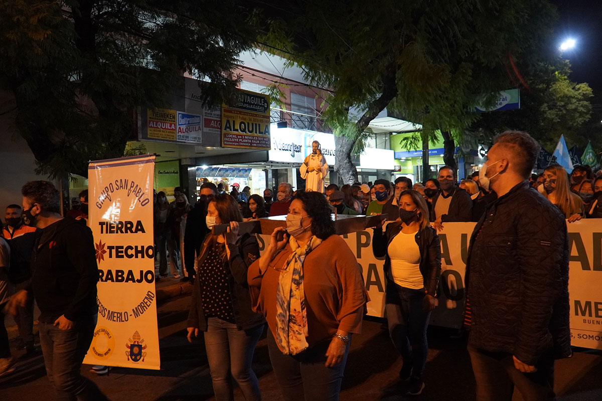 Los merlenses marcharon por Avenida del Libertador hasta Plaza Néstor Kirchner en recuerdo a San Cayetano. Vecinos, trabajadores, concejales, empleados y autoridades municipales, agradecieron por el trabajo y pedir por quienes no lo tienen.