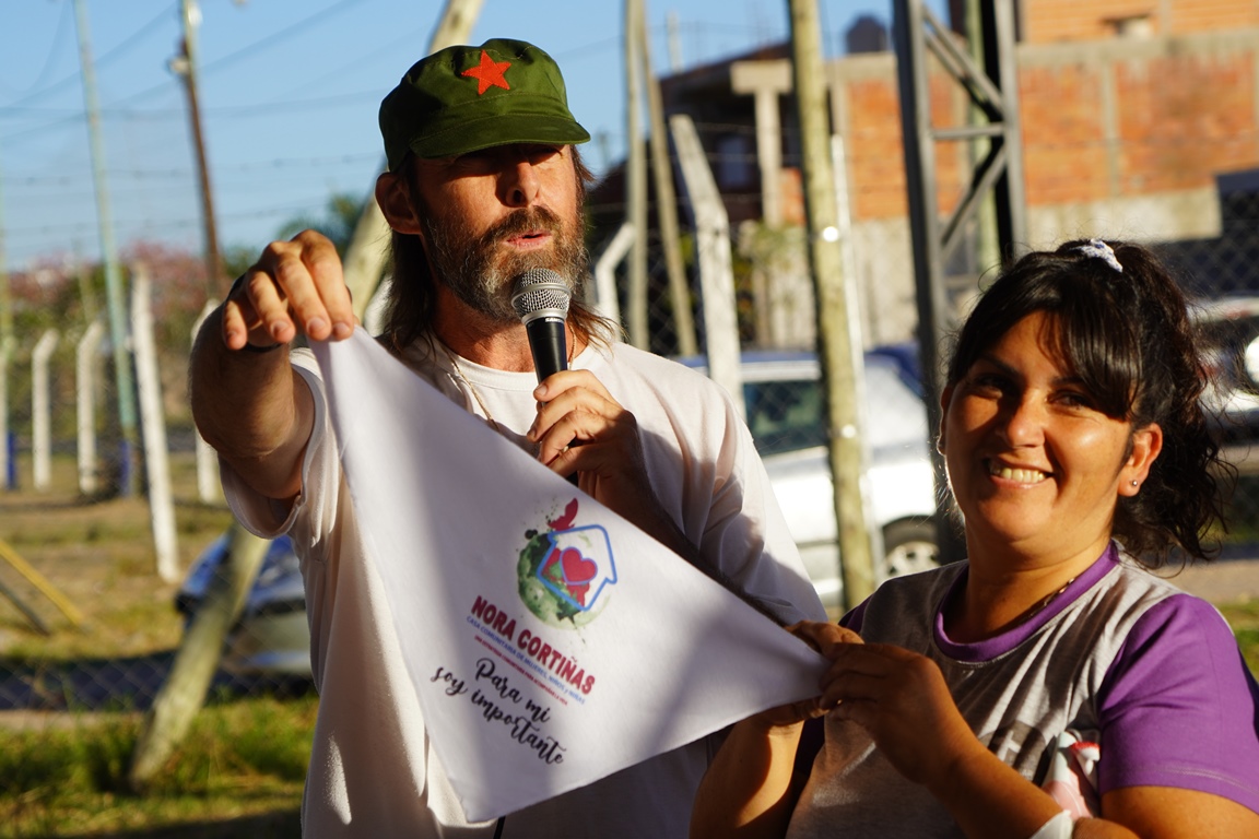 La Casa Comunitaria de Mujeres, niñas y niños ubicada en el barrio “El Cortijo” que alberga mujeres en situación de calle y cuenta con el apoyo del Padre Miguel Velo. Del acto participó la Intendenta de Merlo, Karina Menéndez y la Madre de Plaza de Mayo, Nora Cortiñas.