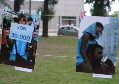 Participaron Candelaria Martínez con Pañuelos de la Memoria, el colectivo de docentes de arte del territorio, Grupo La Neta, y la Muestra Colectiva sobre la Memoria, con obras de Ariel Godoy, Daniel Uranga, Mariela Battaglia y Gustavo Achinelli.