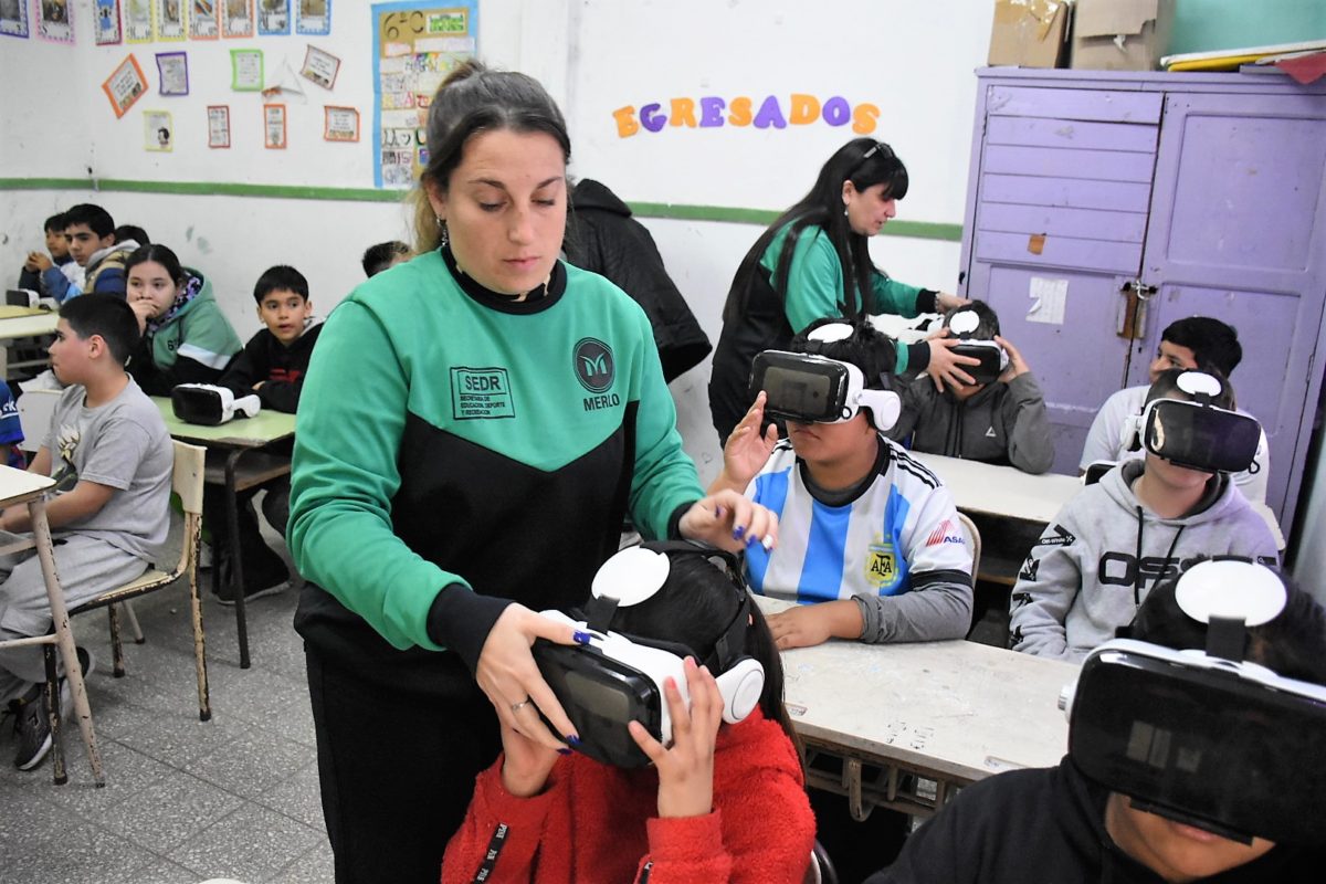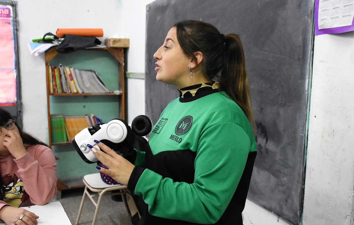 La Subsecretaría de Educación recorre las escuelas del distrito con sus actividades pedagógicas. En esta oportunidad, el área municipal visitó la Escuela Primaria N° 13, de Barrio Pompeya, con el programa de realidad virtual “Merlo 360°”, con el objetivo de que los alumnos y alumnas aprendan la utilización de nuevas tecnologías.