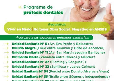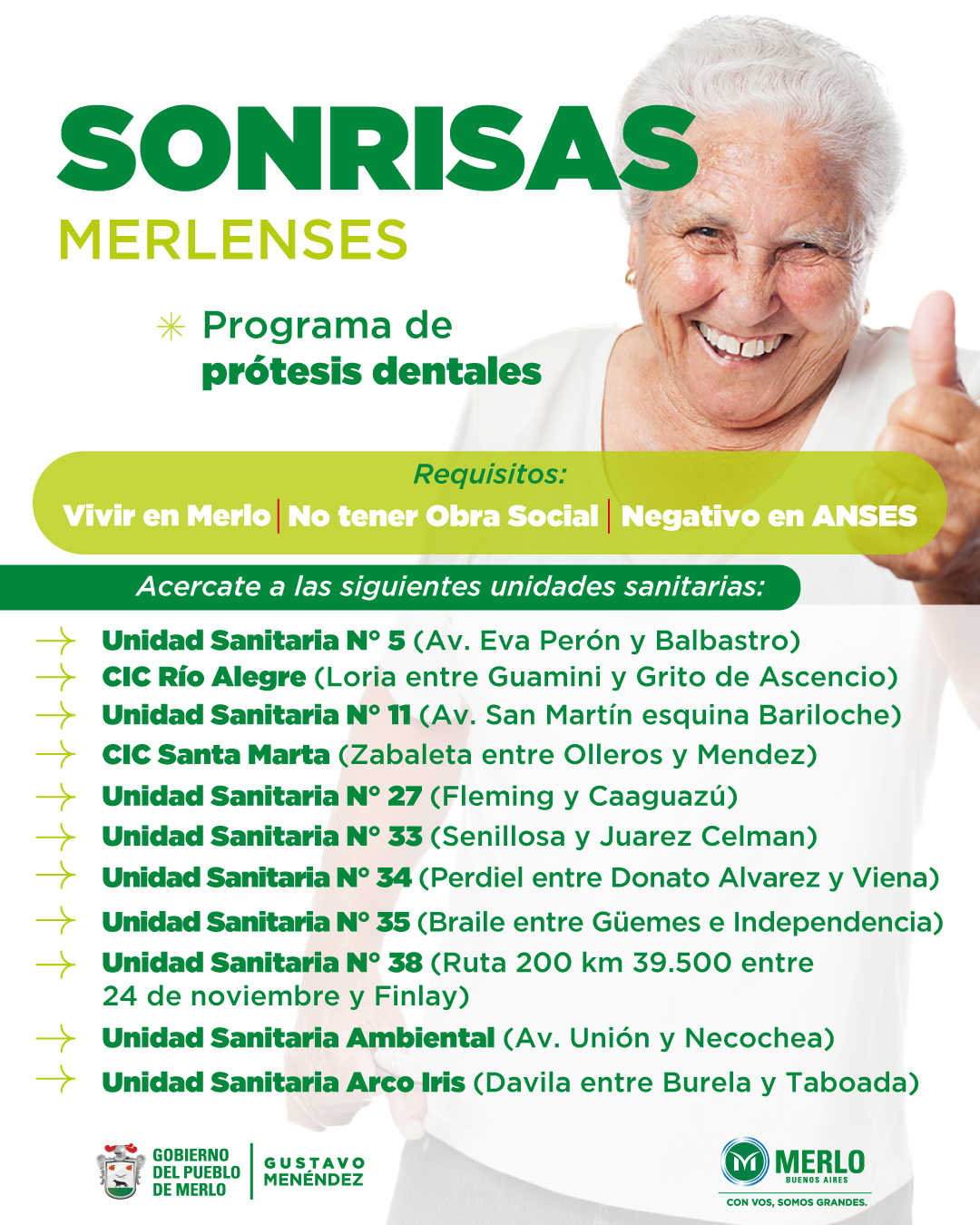 La Secretaría de Salud Pública y la Subsecretaría de Atención Primaria llevan adelante este programa municipal para quienes necesiten tramitar sus prótesis dentales, con el objetivo de asegurar la salud bucal de los vecinos y vecinas de Merlo.