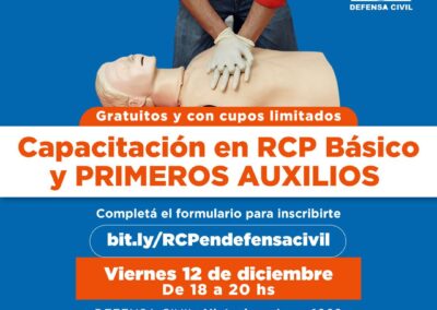 La Dirección de Defensa Civil brinda talleres gratuitos de primeros auxilios, técnicas de reanimación y RCP, con el objetivo de capacitar a la comunidad ante situaciones de emergencia y riesgo de vida.