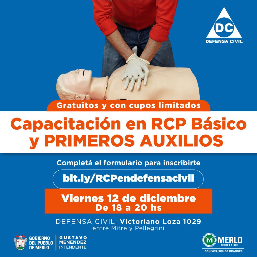 La Dirección de Defensa Civil de Merlo brinda capacitaciones gratuitas de RCP y Primeros Auxilios.