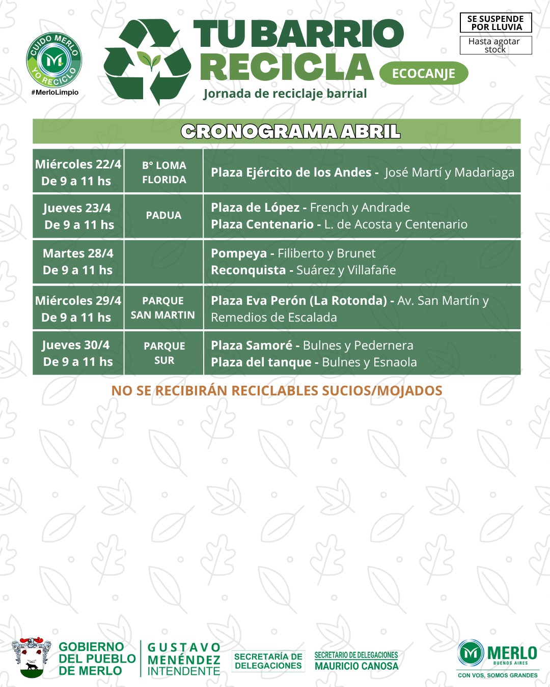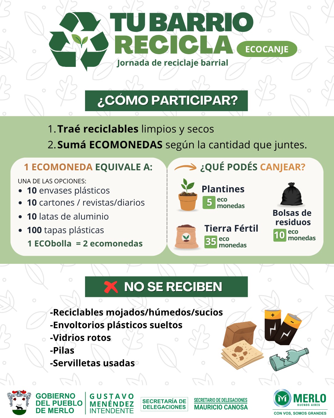 Desde el programa “Merlo Limpio” llegan las jornadas de “Tu Barrio Recicla”, organizadas por la Secretaría de Delegaciones.