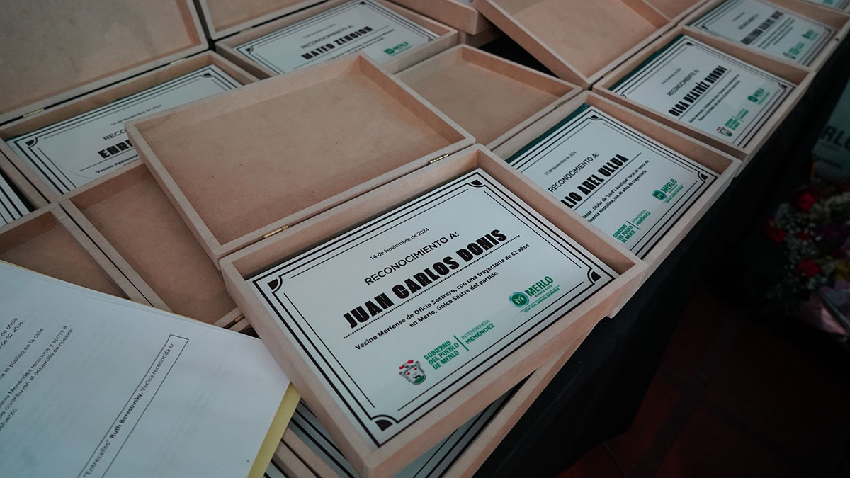 Más de 10 vecinos y vecinas del distrito fueron reconocidos por su trayectoria y por su labor social en beneficio de la comunidad merlense. El Intendente Gustavo Menéndez encabezó la jornada en La Colonial y entregó placas honoríficas.