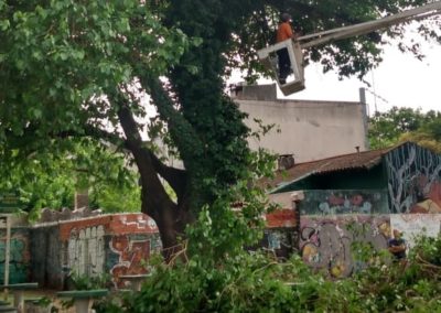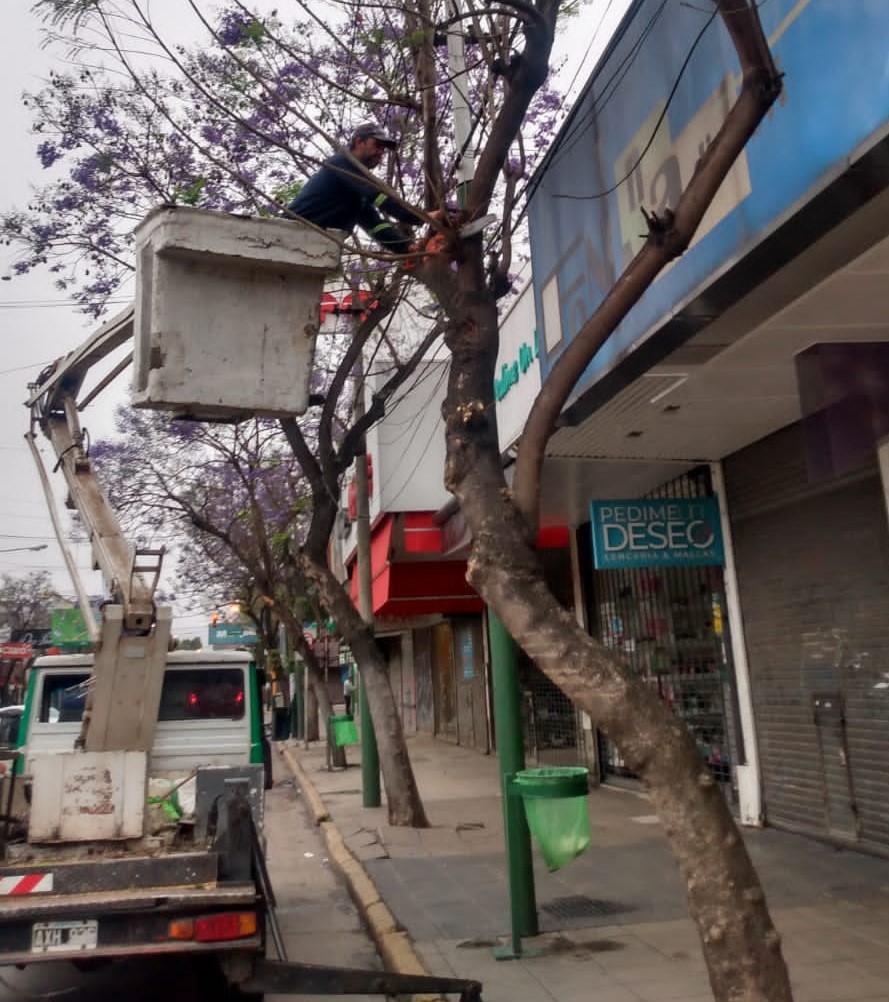 La Secretaría de Obras y Servicios Públicos de Merlo lleva adelante las tareas de despeje de ramas sobre ejemplares que obstruyen alumbrado, tendido eléctrico, cámaras y semáforos y poda sanitaria o de gajos bajos que pueden interferir a la circulación del peatón.