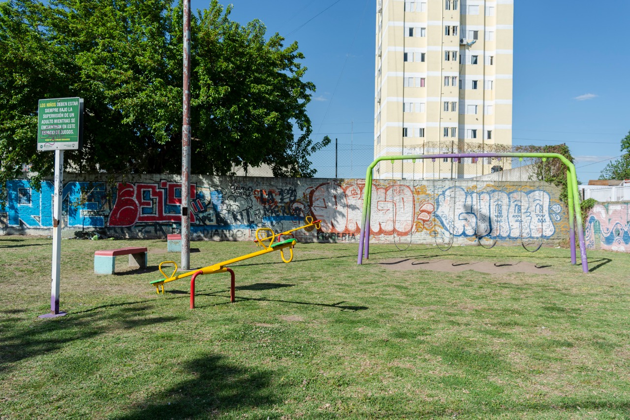 La Secretaría de Obras y Servicios Públicos instaló juegos nuevos y artefactos para ejercicios en dos plazas del distrito, en el marco del programa de mejoramiento de espacios públicos.