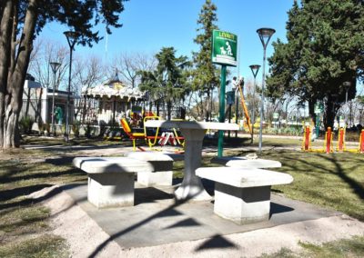 Ubicada en Av. de la Unión entre De los Franceses y Cap. Giachino, ahora cuenta con un nuevo sistema lumínico y botones antipánico alrededor del predio para mayor seguridad y protección de los vecinos. Además, se renovaron los juegos para los más chicos, con una plaza blanda con juegos inclusivos.