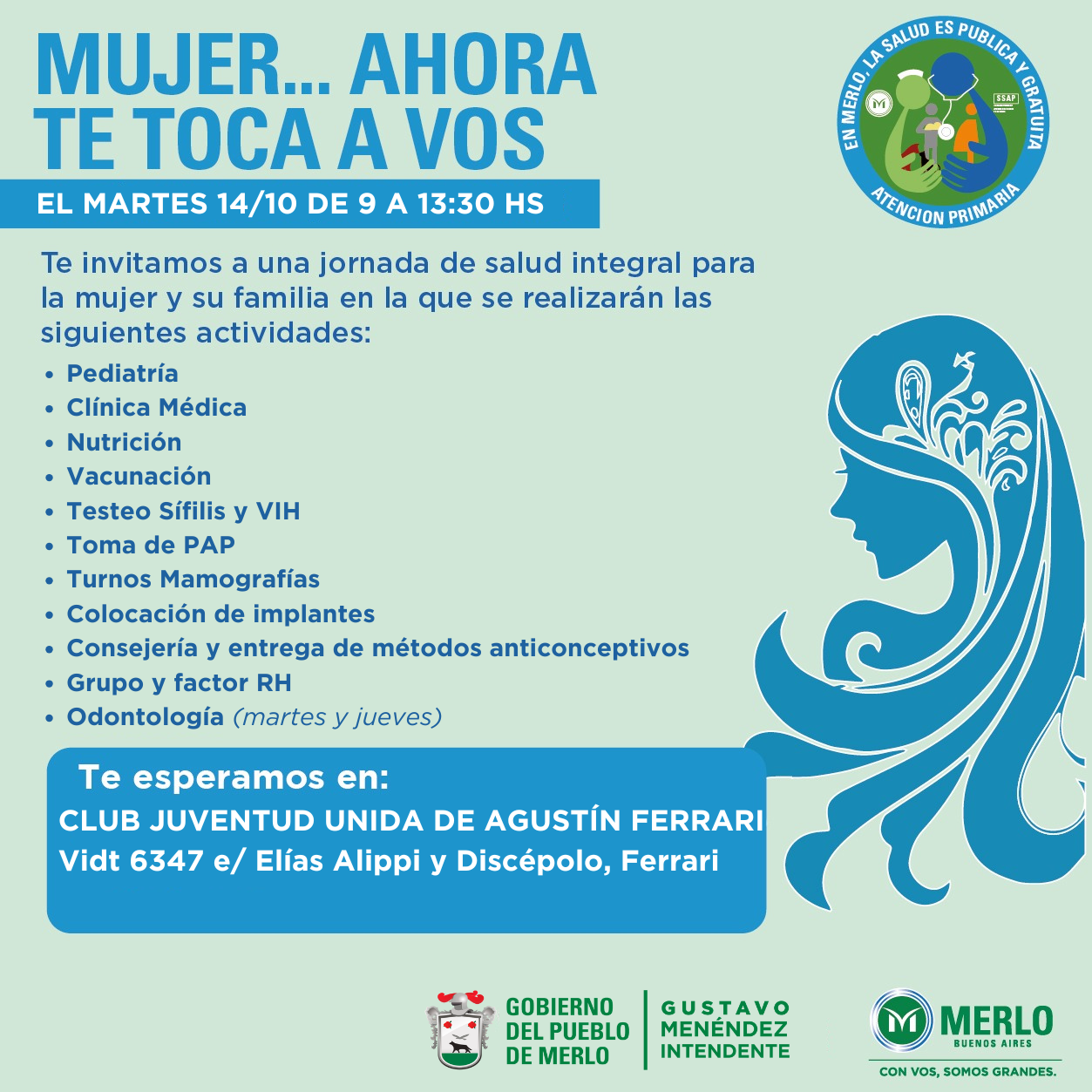 La Municipalidad de Merlo organiza jornadas de salud integral para la mujer y su familia.