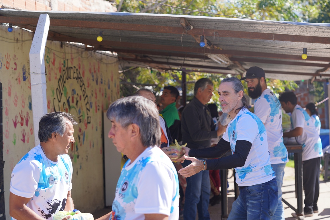 La mercadería se entregó en el comedor del “Padre Paco”, el merendero “Una estrella para Ariel” y el Comedor “Esperanza” de Mariano Acosta, donde se presentaron las autoridades de la Subsecretaría de Deportes junto a los veteranos.