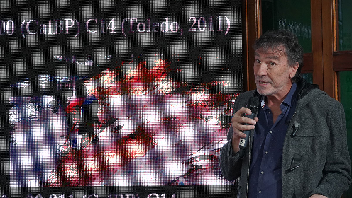 La exposición estuvo a cargo del Lic. en Antropología y Doctor en Cs. Naturales, Mariano Del Papa: “Este hallazgo en Merlo es uno de los más antiguos en América del Sur. Proporciona evidencia de poblamiento humano anterior a la retirada de los glaciares, que tuvo lugar hace 17.000 o 16.000 años”, informó el también docente e investigador.