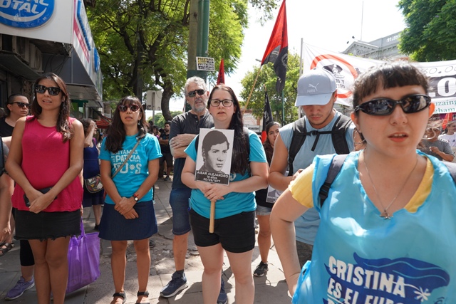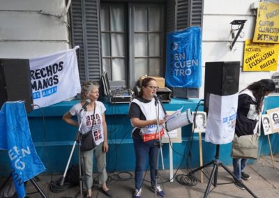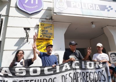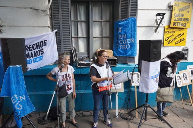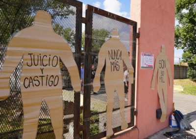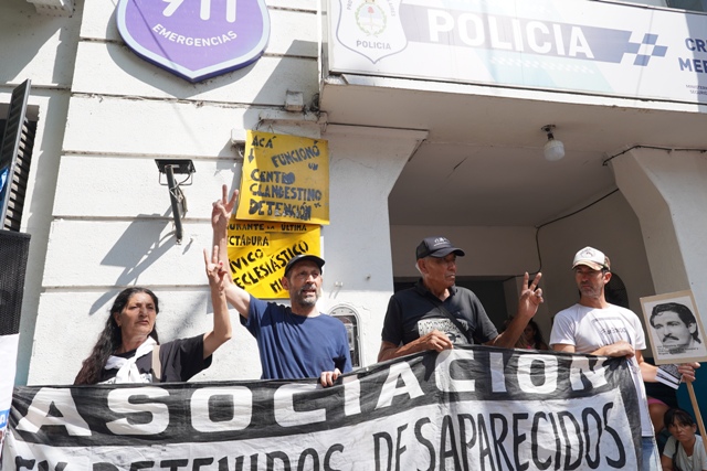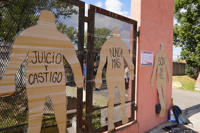 Sobrevivientes, familiares e hijos de desaparecidos, vecinos, organizaciones y autoridades dek distrito se concentraron en Grupo 1 de Vigilancia y Control Aeroespacial (GIVA) para ejercer el reclamo de justicia.