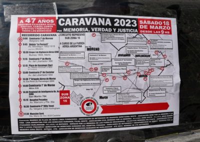 Los participantes realizaron la caravana en autos y colectivos, deteniéndose en cada ex centro clandestino de detención que fue parte del “Circuito Oeste-Subzona 16” durante la última dictadura.