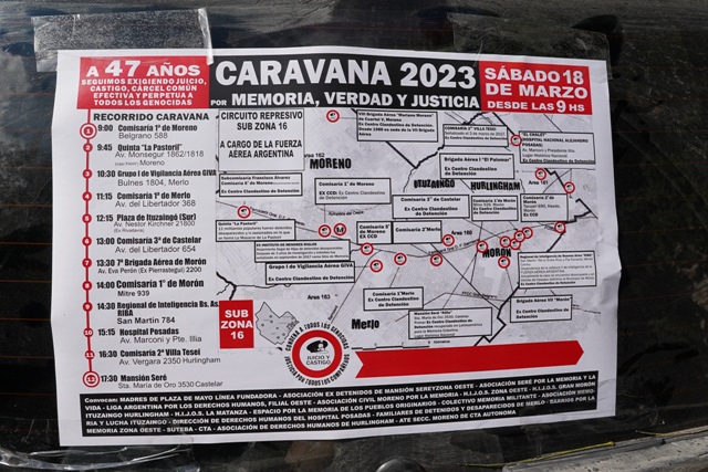 La Dirección de Derechos Humanos de Merlo y organizaciones de DD.HH de zona oeste llevaron adelante la Caravana por la Memoria, Verdad y Justicia. Se recorrieron puntos que fueron centros de detención clandestinos durante la última dictadura cívico-militar.