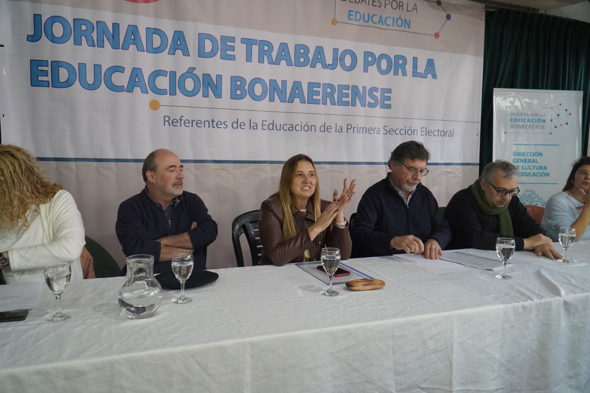 El Municipio fue anfitrión del primer encuentro de trabajo en el cual participaron la Intendenta Karina Menéndez, el Presidente del Grupo Provincia, Gustavo Menéndez, el Director General de Cultura y Educación provincial Alberto Sileoni y Referentes de la Educación de la Primera Sección Electoral.