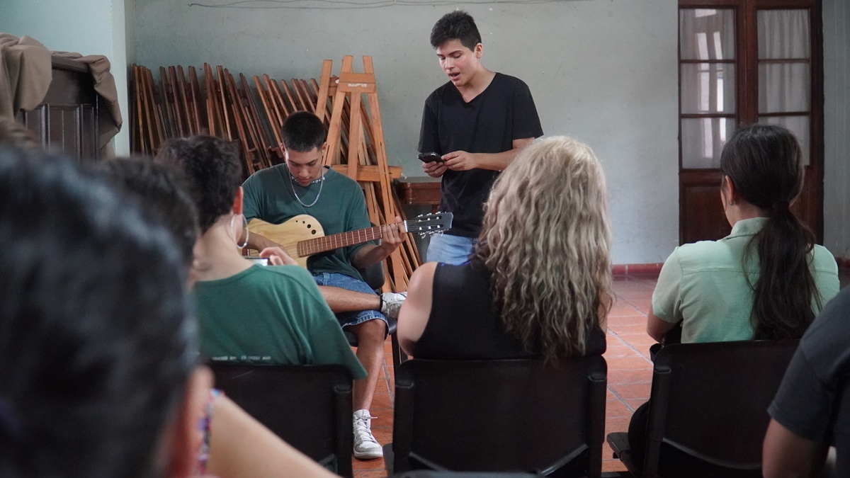 La docente Claudia García, destacó: “El objetivo es pasarlo lo más lindo que se pueda, divertirse, olvidarse de todo, y pasar dos horas cantando y jugando. Así nos conocemos entre todos en el grupo. La idea es llevar un poco de alegría en esta situación delicada que estamos viviendo”.