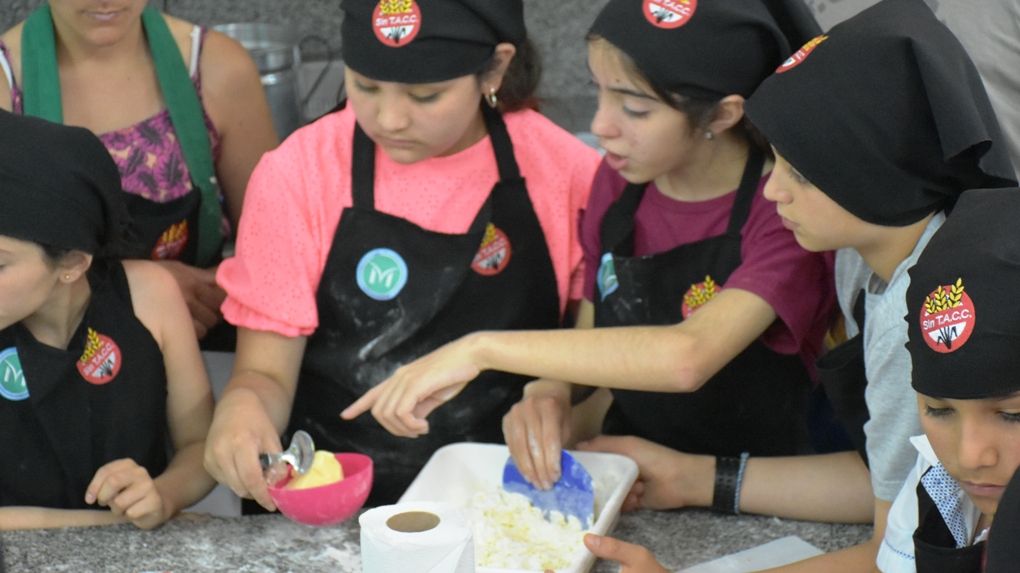 La jornada se realizó en la Escuela de Artes y Oficios de Merlo y contó con la participación de 30 chicos, junto a sus padres, que pudieron aprender a realizar facturas sin TACC.