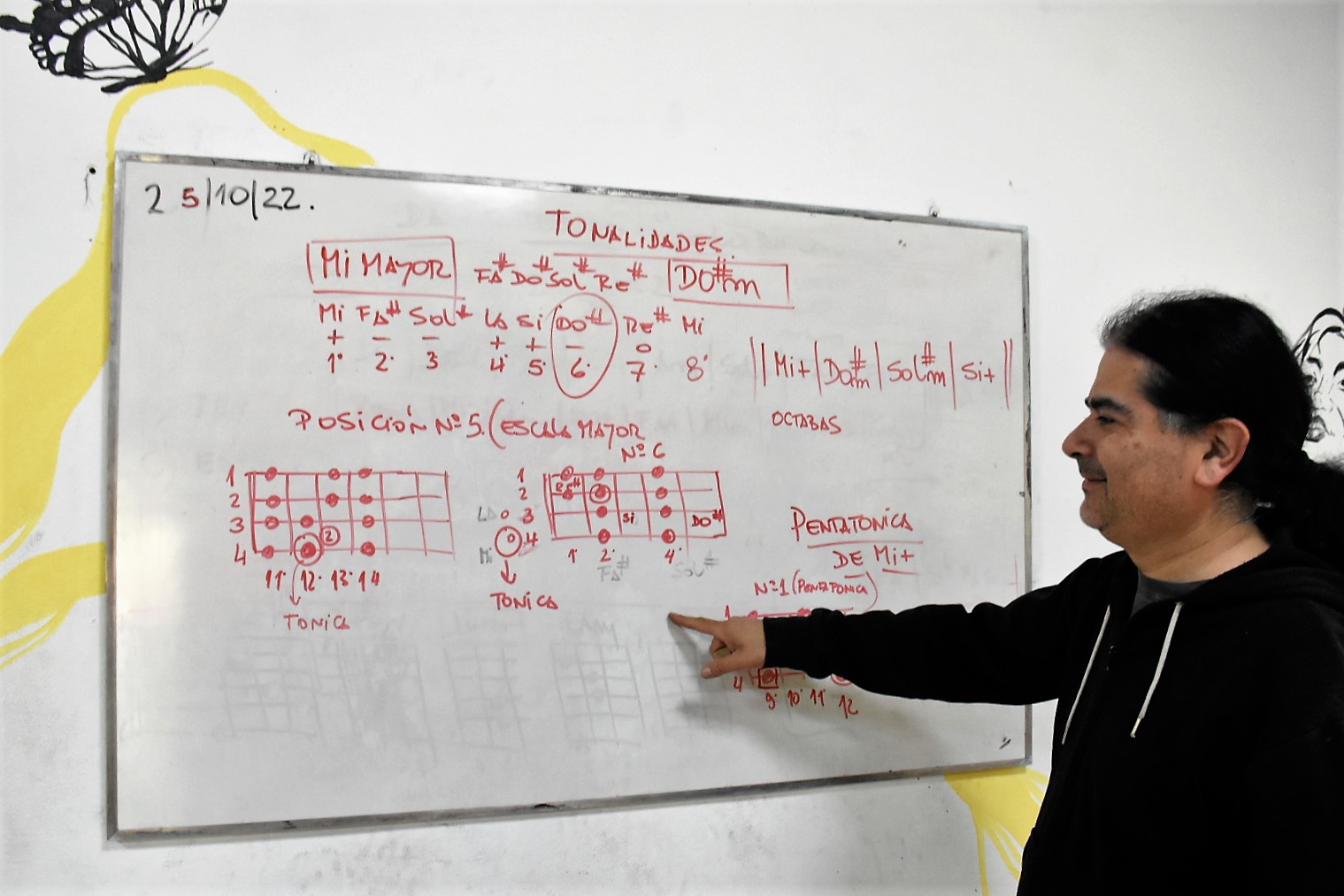 La cursada se desarrolla en las diferentes Casas de Juventudes del distrito y abarca los niveles principiante, intermedio y avanzado, donde se aprenden las diferentes técnicas de guitarra criolla, acústica o eléctrica.