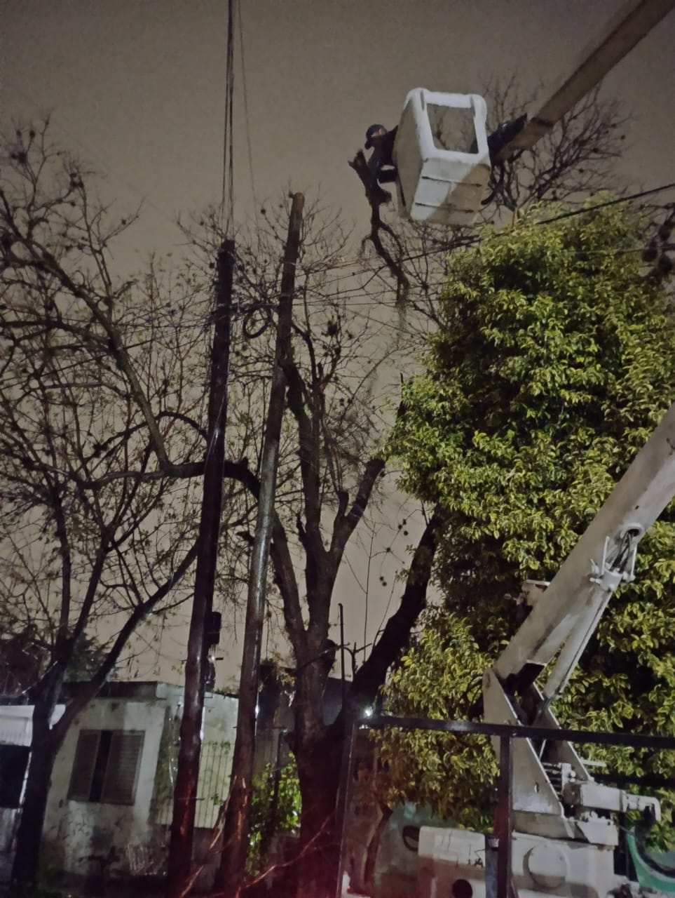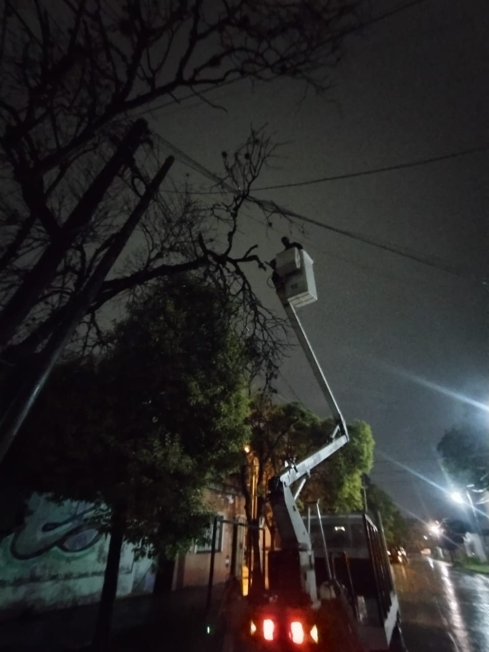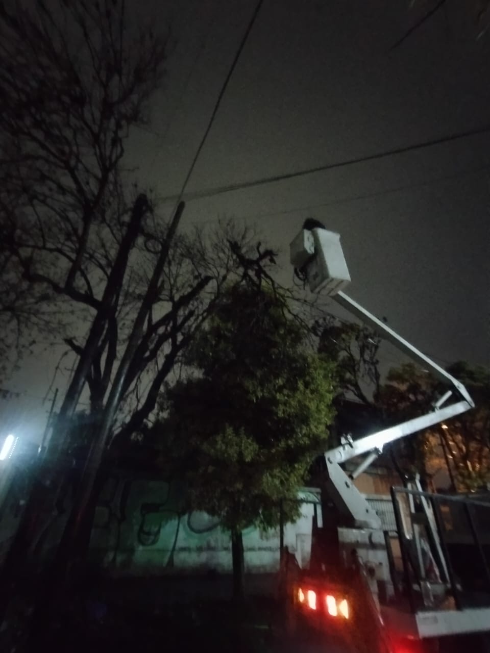 Las labores incluyeron también el retiro de ramas que obstruían el cableado eléctrico, además de la reparación y reposición de luminarias en diferentes barrios del distrito.